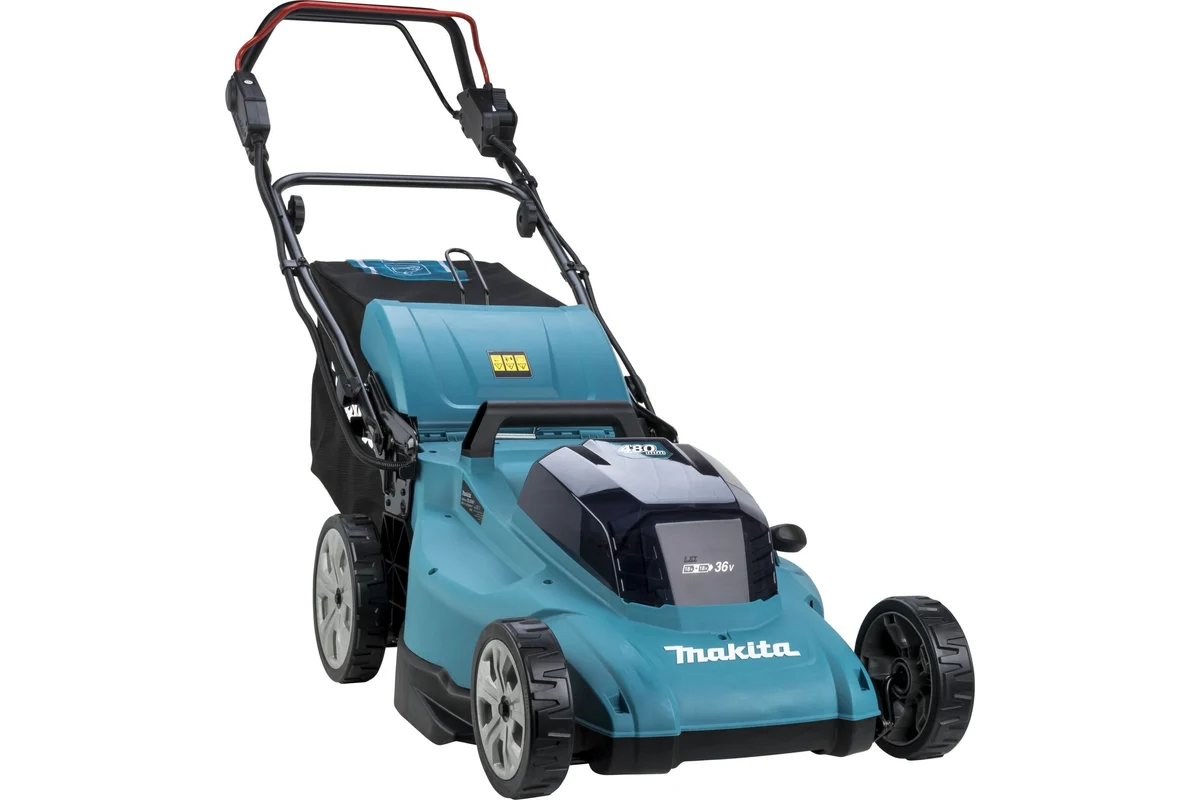 Мощная аккумуляторная газонокосилка Makita LXT 2x18 В, 48 см, 62 л, без АКБ и ЗУ, DLM481Z – идеальный выбор для аккуратного ухода за участком площадью до 800 кв.м! Благодаря бесщёточному двигателю, она обеспечивает безупречное качество стрижки при минимальных усилиях со стороны пользователя. Широкий захват (48см) сокращает время работы, а мягкую посадку травы обеспечит травосборник объемом 62 л и функция мульчирования. Ко всему этому добавляется комфорт самоходной модели с выбором скорости и удобством классической ручки.